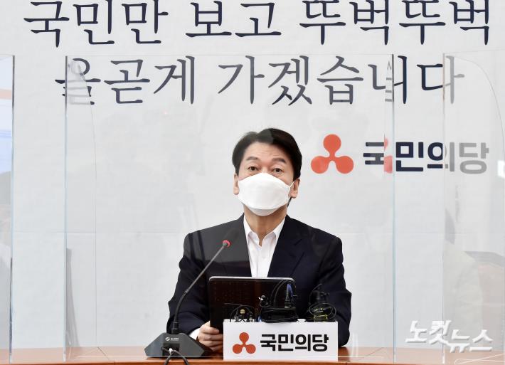 국민의당 서울시장 후보인 안철수 대표가 22일 국회에서 열린 당 최고위원회의 산회 직후 기자회견을 갖고 있다.