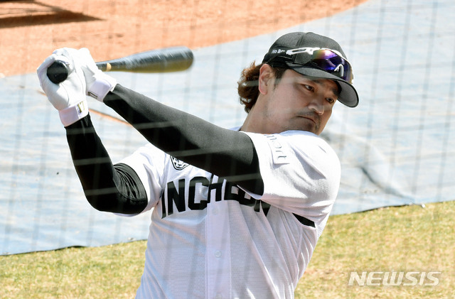 [대구=뉴시스] 이무열 기자 = SSG 추신수가 16일 오전 대구 수성구 삼성라이온즈파크에서 열리는 삼성과의 연습경기에 앞서 타격 훈련을 하고 있다. 2021.03.16. lmy@newsis.com |