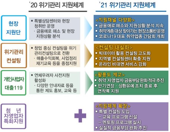 2021년 금융감독원의 소상공인 코로나19 위기관리 지원체계. 사진=금융감독원 |