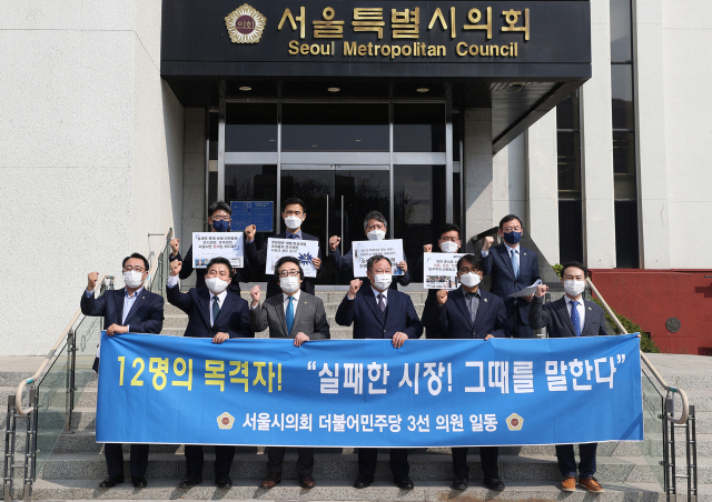 오세훈 전 서울시장 시기를 1년가량 경험했던 서울시의회 더불어민주당 소속 3선 시의원들이 25일 오세훈 국민의힘 서울시장 후보에게 사퇴하라고 요구했다.