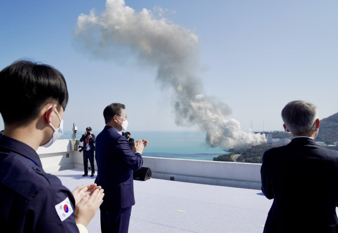 문 대통령은 “75톤급 4개의 로켓 엔진에서 연소가 이뤄지는 125초 동안 엄청난 증기가 뿜어나왔다”라며 “모두가 함께 초를 재는 조마조마하고 긴장된 마음으로 연소시험의 성공을 지켜봤다”고 말했다.