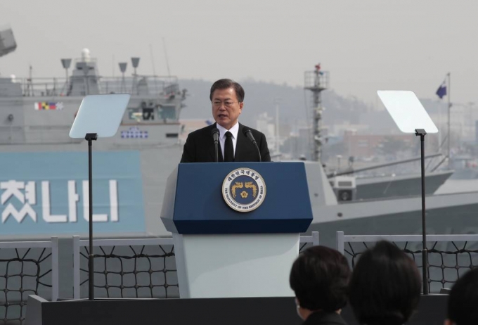 문 대통령은 이날 행사에서 2023년 진수하는 해군 신형 호위함 명칭을 천안함으로 명명했다고 밝혔다. 또 서해수호 영웅들의 고귀한 희생을 추모하고 국가를 위해 헌신한 이들에 대한 정부의 책임도 잊지 않겠다고 설명했다.