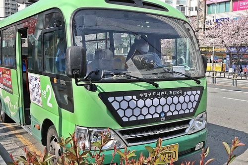 (부산=연합뉴스) 부산 수영구는 관내 마을버스 8대에 미세먼지 저감 필터(흡착 필터)를 부착, 운행한다고 26일 밝혔다.