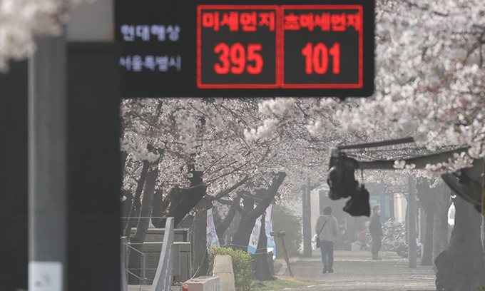 서울지역에 황사 경보가 내려진 29일 오전 서울 여의도 여의나루역의 전광판에 미세먼지, 초미세먼지 수치가 표시돼 있다. 연합뉴스 |