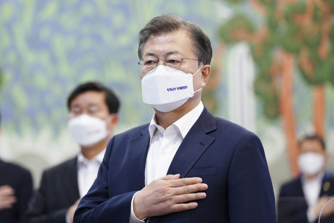 문재인 대통령이 29일 오후 청와대 본관에서 열린 제7차 공정사회 반부패정책협의회에서 국민의례를 하고 있다.(사진=연합뉴스) |
