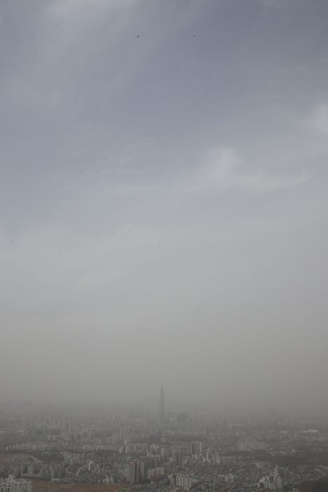 전국이 황사 영향권에 들어서며 미세먼지 농도가 '매우 나쁨' 수준을 보이고 있는 29일 오후 경기도 광주 남한산성에서 바라본 서울 시내가 뿌옇게 보이고 있다.(사진=이데일리) |