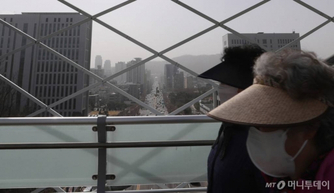 전국 미세먼지 농도가 매우 나쁨 수준을 보이는 29일 서울 서초구 누에다리에서 바라본 서울 도심이 뿌옇게 보이고 있다. /사진=김휘선 기자 hwijpg@ |