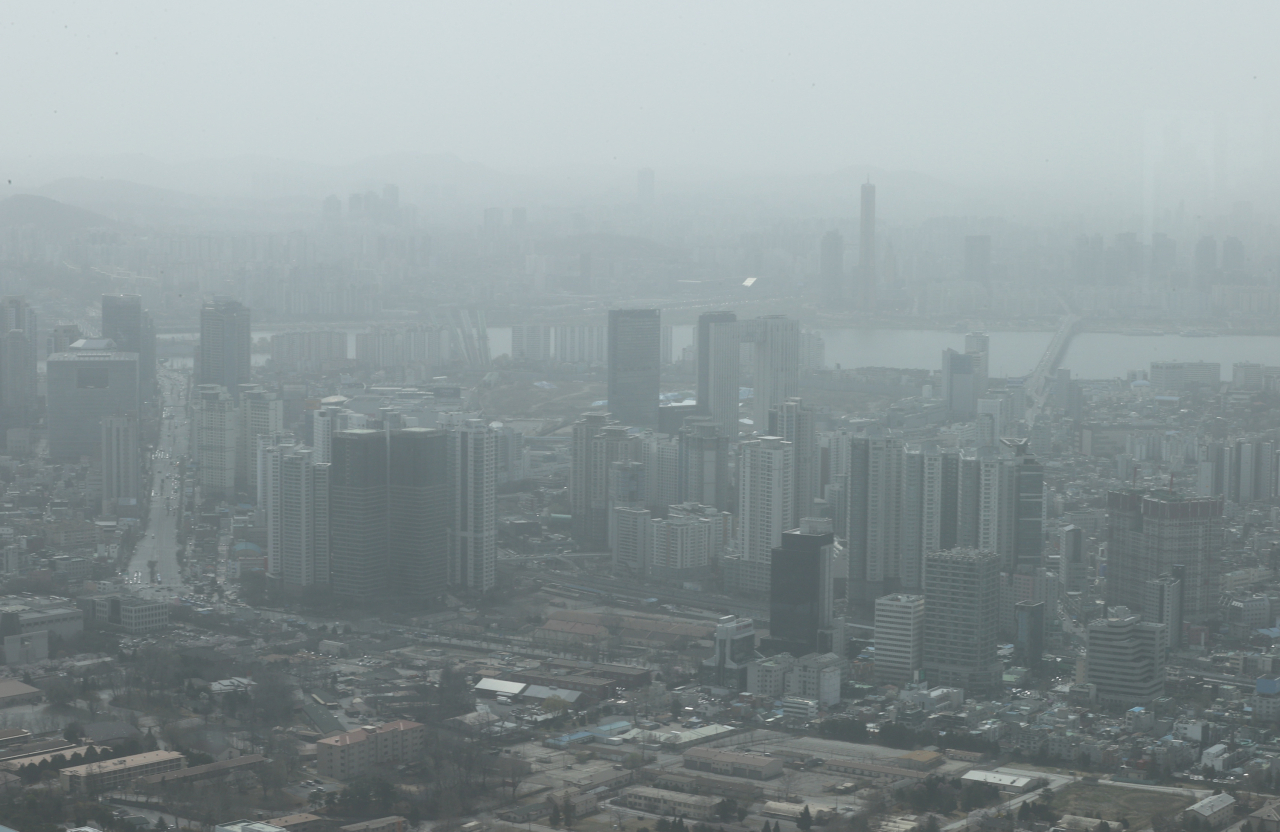 전국이 몽골·중국발(發) 황사 영향권에 든 지난 29일 오후 서울 용산구 남산에서 바라본 서울 시내 모습. [연합] |