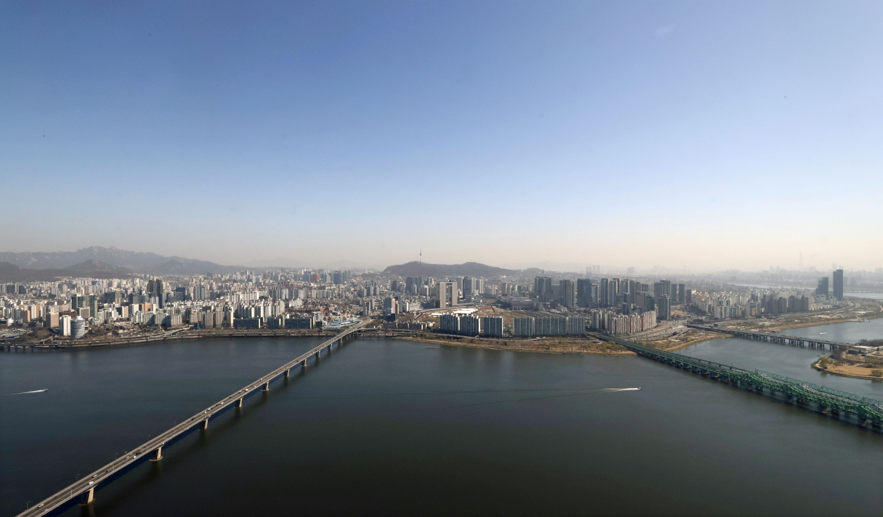 황사 등의 영향으로 전국적으로 미세먼지 농도가 ‘매우나쁨’ 수준을 보인 30일 서울 영등포구 여의도 63아트 전망대에서 바라본 서울 도심이 황사와 미세먼지에 갇혀있다. [연합] |