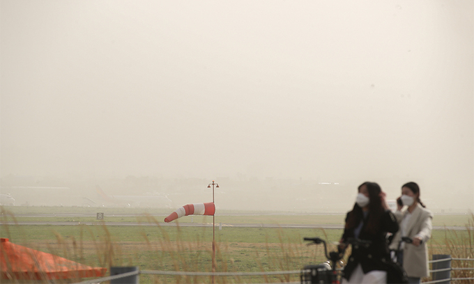 짙은 모래바람으로 제주는 전날 오후 1시를 기해 미세먼지와 초미세먼지 경보가 동시에 내려졌다.