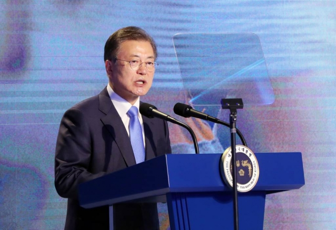 [서울=뉴시스]추상철 기자 = 문재인 대통령이 31일 오전 서울 중구 대한상공회의소에서 열린 제48회 상공의 날 기념식에 참석해 축사를 하고 있다. 2021.03.31. scchoo@newsis.com |