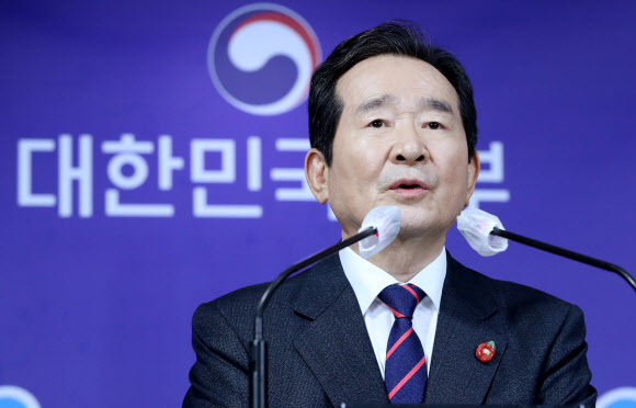 정세균 국무총리가 1일 오후 서울 종로구 세종대로 정부서울청사에서 주요정책현안 브리핑을 하고 있다. 뉴스1 |