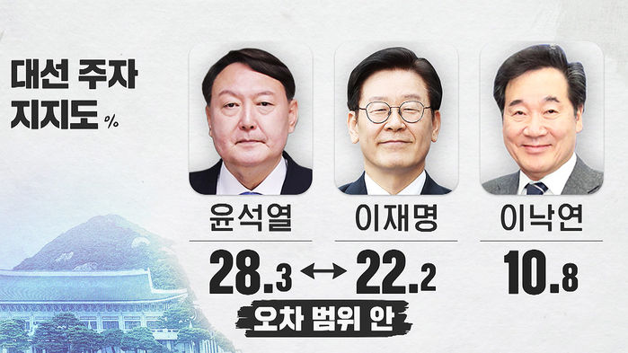 윤 전 총장과 이 지사 지지율은 오차 범위 안에 있습니다.