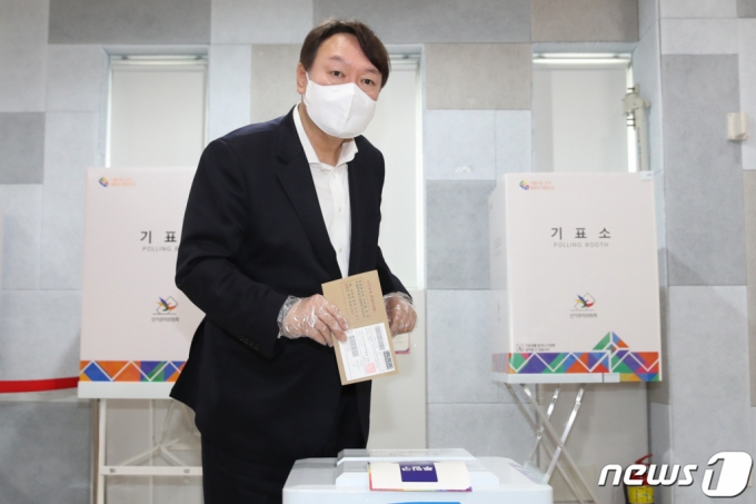 차기 대권주자 선호도 1위를 달리고 있는 윤석열 전 검찰총장이 2일 4·7 서울시장 보궐선거에서 사전투표에 참여했다.