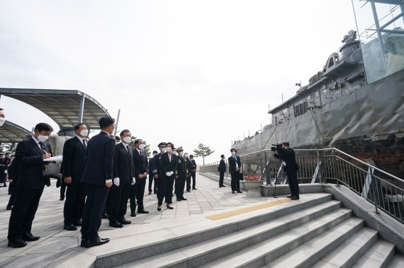 앞서 문 대통령은 지난달 26일 경기도 평택시 해군 2함대사령부에서 열린 '제6회 서해수호의 날' 기념사에서 천안함 46용사를 가리켜 "불굴의 투혼으로, 몸과 마음을 다 바쳐 바다 위 저물지 않는 호국의 별이 됐다"며 경의를 표했다.