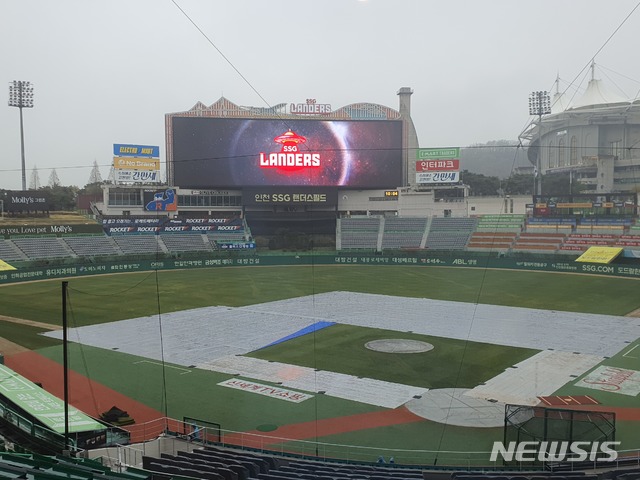 3일 오후 2시 인천 SSG랜더스필드에서 열릴 예정이었던 SSG와 롯데 자이언츠의 2021시즌 개막전은 비로 취소됐다.