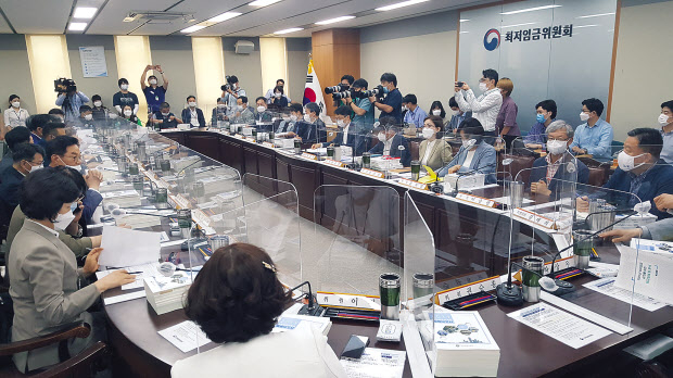 2022년도 최저임금 심의를 위한 절차가 시작된 가운데 노동계와 경영계가 한 치 양보없는 싸움을 예고하고 있다. ‘최저임금 1만원’을 공약으로 내건 문재인 정부는 이제 최저임금 인상률 역대 최저 정부라는 불명예를 뒤집어쓸지도 모르는 상황이다. 사진은 최저임금위원회 전원회의 모습. [헤럴드DB] |