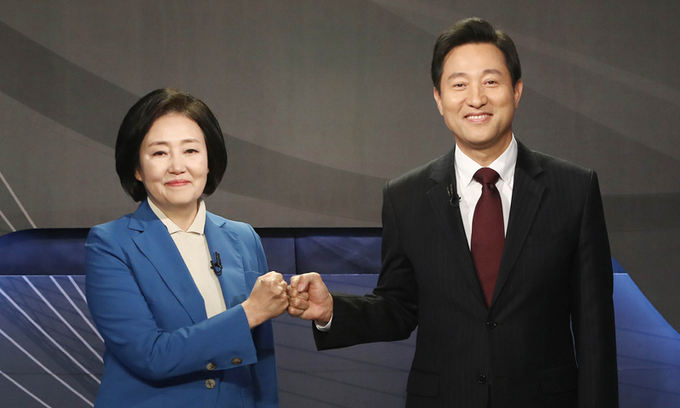 오 후보도 “저는 거꾸로 박 후보가 거짓말의 본체라고 생각한다. 민주당은 서울시장 후보를 안 내기로 해놓고 (후보를 내면서) 거짓말을 했다”고 공격하자, 박 후보는 “제 존재 자체가 거짓말이다? 아주 몹쓸 이야기를 하신다”고 말했다.