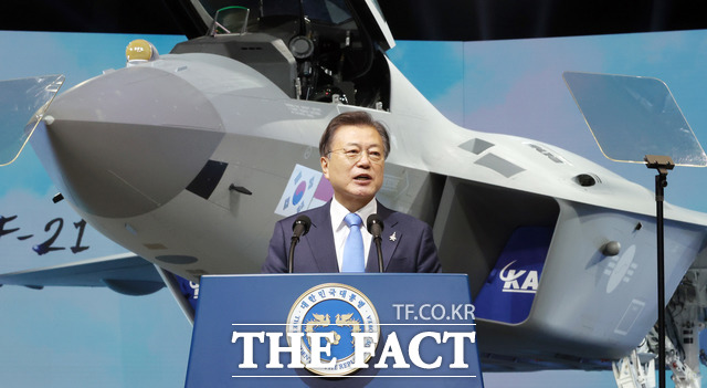문 대통령은 기념사에서 "우리도 우리 손으로 만든 첨단 초음속 전투기를 갖게 됐다. 세계 여덟 번째 쾌거"라며 "자주국방의 새로운 시대가 열렸다"고 말했다.