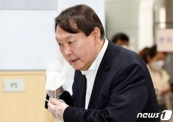 (서울=뉴스1) 신웅수 기자 = 윤석열 전 검찰총장이 2일 오전 서울 서대문구 남가좌1동주민센터에 마련된 사전투표소에서 투표를 하고 있다. 지난달 4일 사퇴 후 별다른 일정 없이 칩거하던 윤 전 총장은 최근 '101세 철학자'로 불리는 김형석 연세대 명예교수를 방문해 조언을 듣고 이철우 연세대 법학전문대학원 교수를 만나는 등 비공식 활동을 이어가며 외부 노출을 자제해왔다. 2021.4.2/뉴스1 |