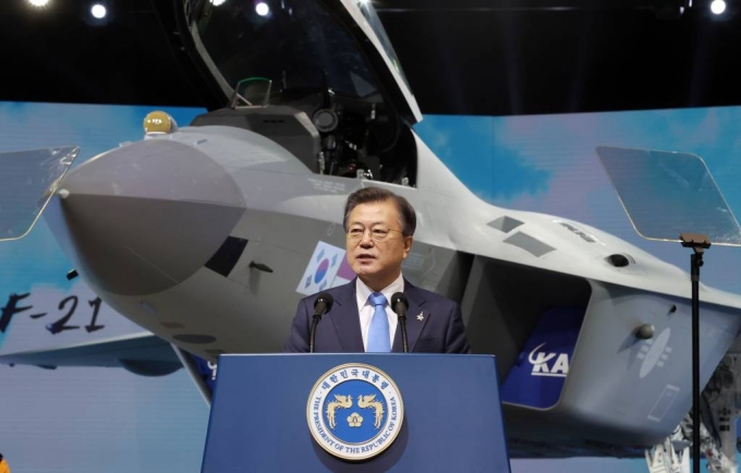 문 대통령은 특히 국산 전투기가 국방에 미칠 긍정적 영향을 강조했다. "우리가 우리의 기술로 만든 우리의 첨단전투기"라며 "국산 전투기가 갖는 장점은 이루 말할 수 없다"고 강조했다.