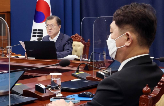 문 대통령은 이날 오전 청와대에서 비대면 화상으로 국무회의를 주재하고 "코로나로 힘든 시기에 국민들이 의지할 수 있고 국민들에게 희망을 드릴 수 있는 정부가 될 수 있도록 각 부처는 사명감을 갖고 맡은 일에 최선 다하자"며 이같이 말했다.