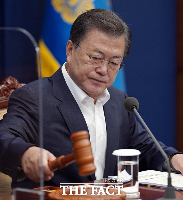 문재인 대통령이 14일 '일감 몰아주기' 의혹이 제기된 전효관 청와대 문화비서관, '직원 폭언' 논란이 제기된 김우남 한국마사회장에 대한 감찰을 실시할 것을 지시했다. 문 대통령이 전날 청와대에서 국무회의를 주재하는 모습. /청와대 제공 |