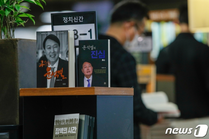 14일 서울 종로구 교보문고 광화문점에 '윤석열의 진심', '구수한 윤석열' 등 윤 전 검찰총장 관련 서적이 진열돼 있다. '윤석열의 진심'은 충암고 동창인 이경욱 전 기자가 지난 9월 그와 만나 3시간 가량 나눈 대화를 담았다. '구수한 윤석열'은 김연우 방송작가가 윤 총장의 서울대 법학과 79학번 동기들을 만나 그의 학창 생활에 대한 일화를 담았다./사진=뉴스1 |