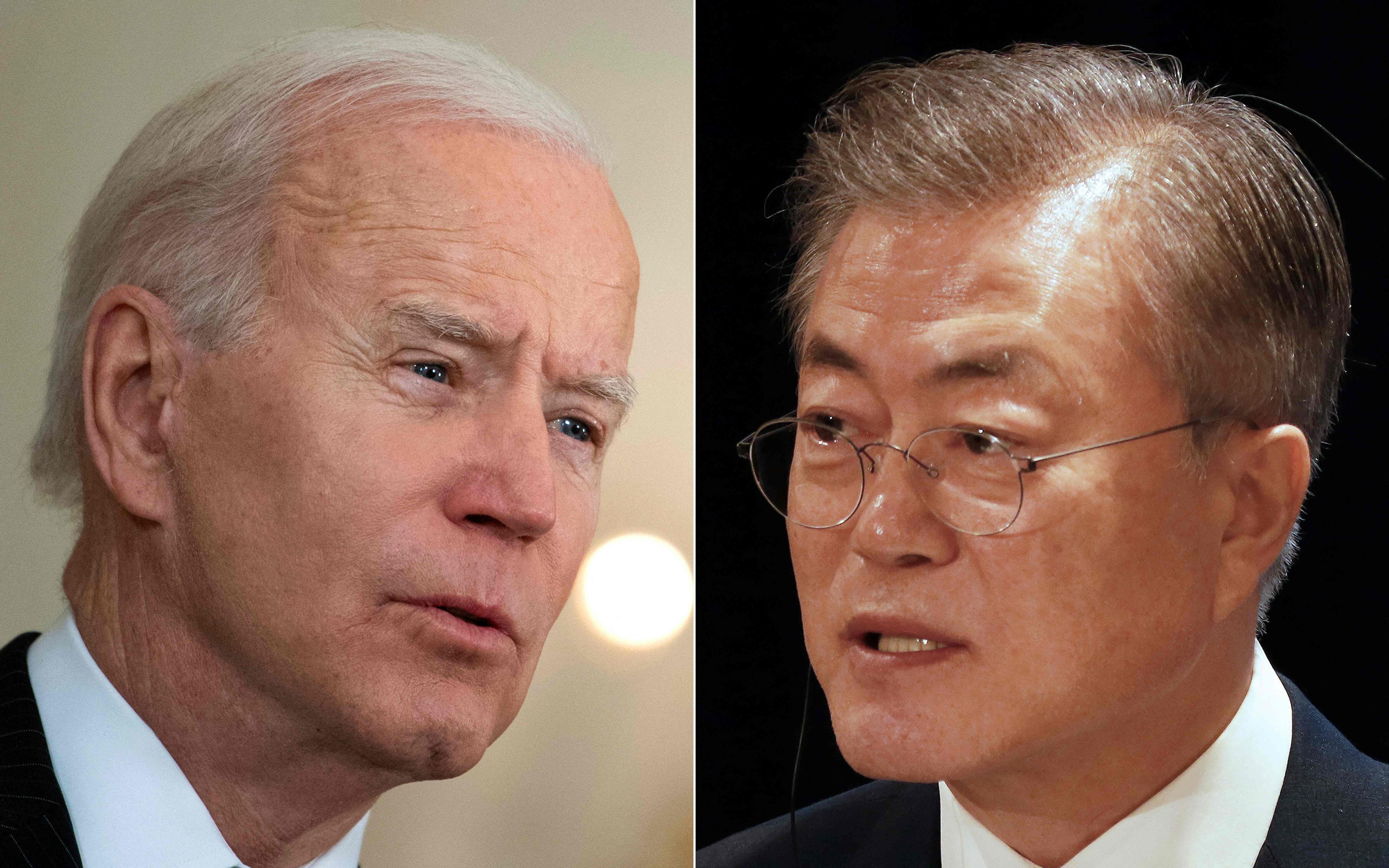 왼쪽 사진은 조 바이든 미국 대통령. 오른쪽 사진은 문재인 대통령. /AFP 연합뉴스 |