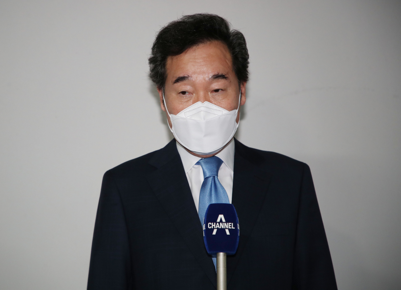 코로나19 자가격리에서 해제된 이낙연 더불어민주당 전 대표가 지난 15일 오후 서울 종로구 경희궁자이 아파트 단지 지하주차장에서 향후 행보에 대한 취재진 질문에 답하고 있다. [연합] |