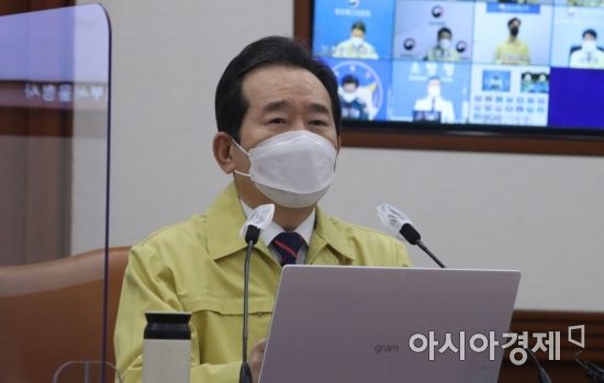 정세균 국무총리가 16일 서울 종로구 정부서울청사에서 열린 코로나19 대응 중앙재난안전대책본부(중대본) 회의에 참석해 발언하고 있다./김현민 기자 kimhyun81@ |