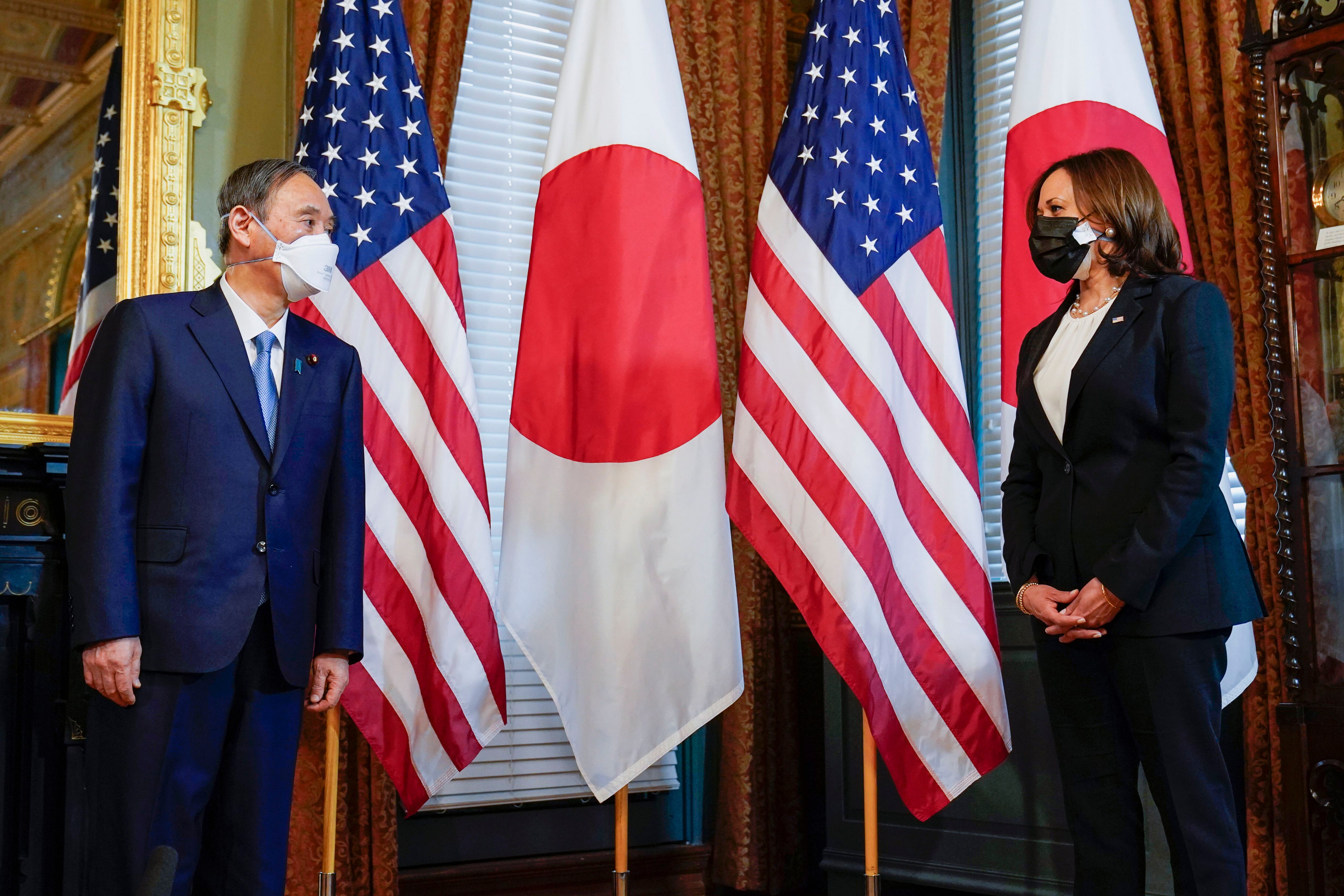 백악관 옆 아이젠하워 행정동에서 이뤄진 이날 만남에서 해리스 부통령은 인도-태평양 지역에 대해 스가 총리와 논의하기를 기대한다고 밝혔다. 스가 총리는 해리스 부통령에게 조 바이든 미 행정부가 동맹국과의 협력을 중시하는 점에 대해 감사를 표했다.