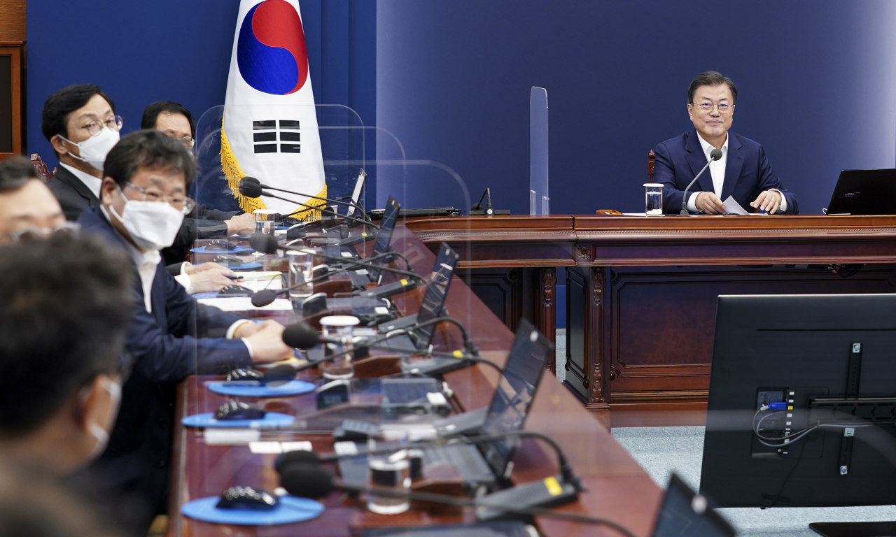 이어 문 대통령은 서울·부산 등 야당인사로 교체된 지자체장과의 '특별한 협력체제 구축'을 강조했다. 문 대통령은 "특히 방역과 부동산 문제는 민생에서 가장 민감한 사안"이라며 "아슬아슬한 방역관리에 허점이 생기거나 부동산 시장이 다시 불안한 상황이 되지 않도록 중앙정부와 지자체가 충분히 소통하고 긴밀히 협력해 주길 당부드린다"고 했다.