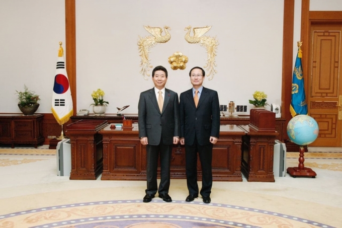 故 노무현 전 대통령과 홍영표 더불어민주당 의원 / 사진=홍영표 의원 페이스북 |