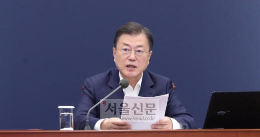문재인 대통령이 19일 청와대 여민관에서 열린 수석?보좌관 회의에서 모두발언을 하고 있다. 2021. 4. 19 도준석 기자 pado@seoul.co.kr |