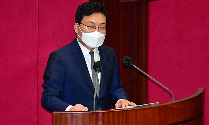 무소속 이상직 의원이 21일 국회 본회의에서 검찰의 체포동의안에 대한 신상 발언을 하고 있다. 연합뉴스 |