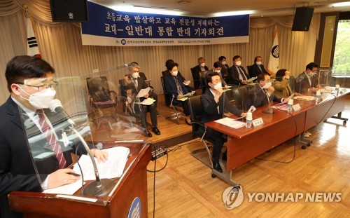 (서울=연합뉴스) 이도연 기자 = 부산교대와 부산대 통합 논의를 두고 전국교육대학총동창회와 한국교원단체총연합회(교총)가 "초등교육 말살 행태"라며 반발했다.