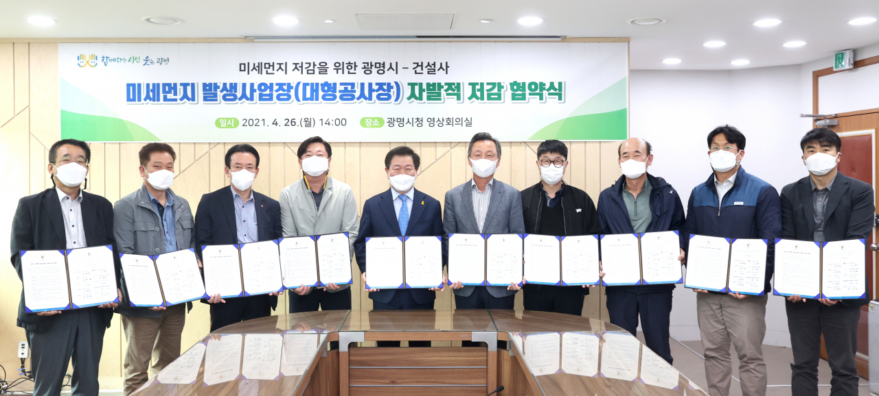 [헤럴드경제(광명)=박정규 기자]광명시와 관내 공사를 진행하고 있는 대규모 건설사가 미세먼지 저감을 위해 힘을 모았다.