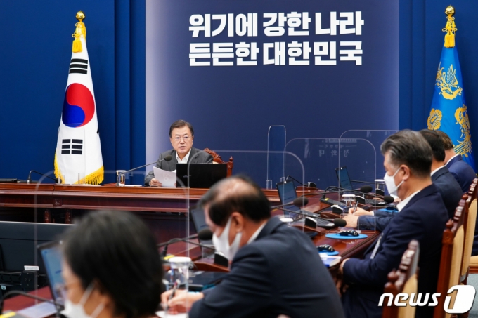 (서울=뉴스1) 유승관 기자 = 문재인 대통령이 26일 청와대 여민관에서 열린 수석·보좌관회의에서 발언하고 있다. 2021.4.26/뉴스1 |