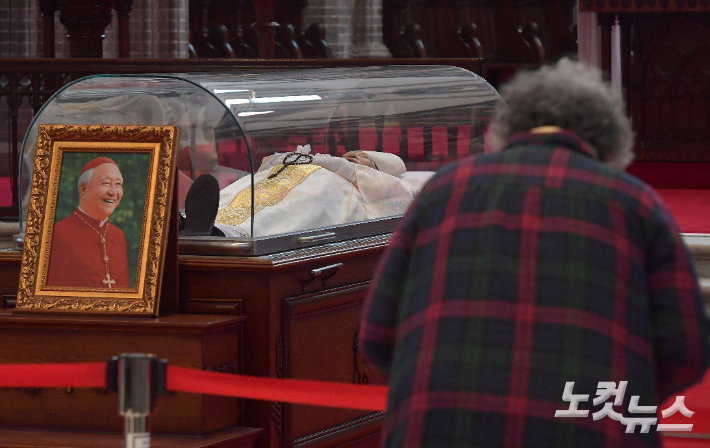 28일 서울 명동성당에서 조문객들이 지난 27일 선종한 정진석 추기경을 추모하고 있다. 박종민 기자 |