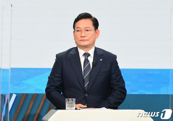 27일 오후 서울 여의도 KBS에서 열린 더불어민주당 당 대표 후보자 토론회에서 송영길 후보가 토론을 준비하고 있다. /사진=뉴스1 |