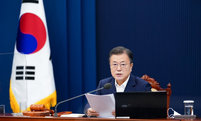 문재인 대통령이 지난달 27일 청와대 여민관에서 열린 제18회 국무회의에서 발언하고 있다. 뉴스1 |