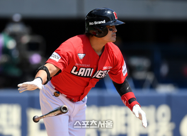 SSG 추신수가 서울 잠실야구장에서 투구에 맞은 후 혀를 내밀고 있다. 최승섭기자 thunder@sportsseoul.com |