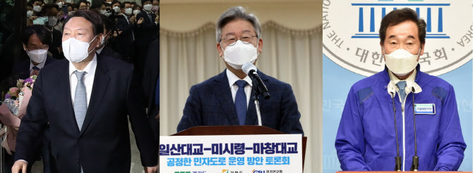 사진 왼쪽부터 윤석열 전 검찰총장, 이재명 경기지사, 이낙연 전 더불어민주당 대표. |