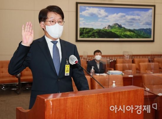 안경덕 고용노동부 장관 후보자가 4일 국회에서 열린 인사청문회에 출석, 증인선서를 하고 있다./윤동주 기자 doso7@ |