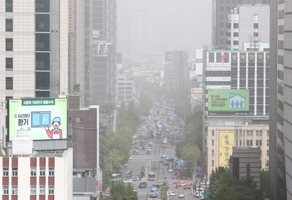 서울에 미세먼지 경보가 발령된 7일 오후 서울 종로 일대가 뿌옇다.(사진=연합뉴스 제공) |