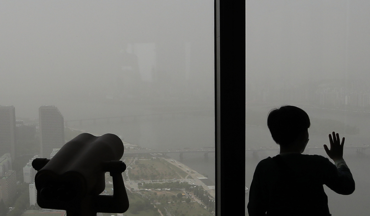 황사로 인해 서울 지역에 ‘미세먼지 경보’가 발령된 7일 오후 여의도 63빌딩에서 바라본 도심이 황사에 덮여 뿌옇다. [연합] |