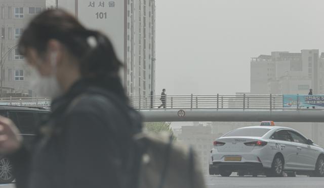 7일 오후 서울 서대문구 아현동 일대가 황사로 뿌옇다. 연합뉴스 |