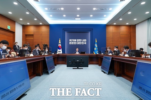 문재인 대통령은 10일 취임 4주년 특별연설에서 "무주택 서민, 신혼부부, 청년들이 내 집 마련의 꿈을 실현할 수 있도록 실수요자의 부담을 완화하는 다양한 정책적 지원을 확대해 나가겠다"고 약속했다. 문 대통령이 지난 3일 청와대에서 제2차 코로나19 대응 특별방역점검회의를 주재하는 모습. /청와대 제공 |