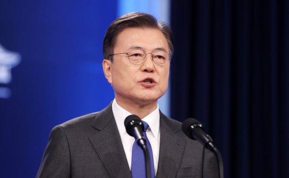 문재인 대통령이 10일 오전 청와대 춘추관 대브리핑룸에서 취임4주년 특별연설을 하고 있다. 사진=뉴시스화상 |
